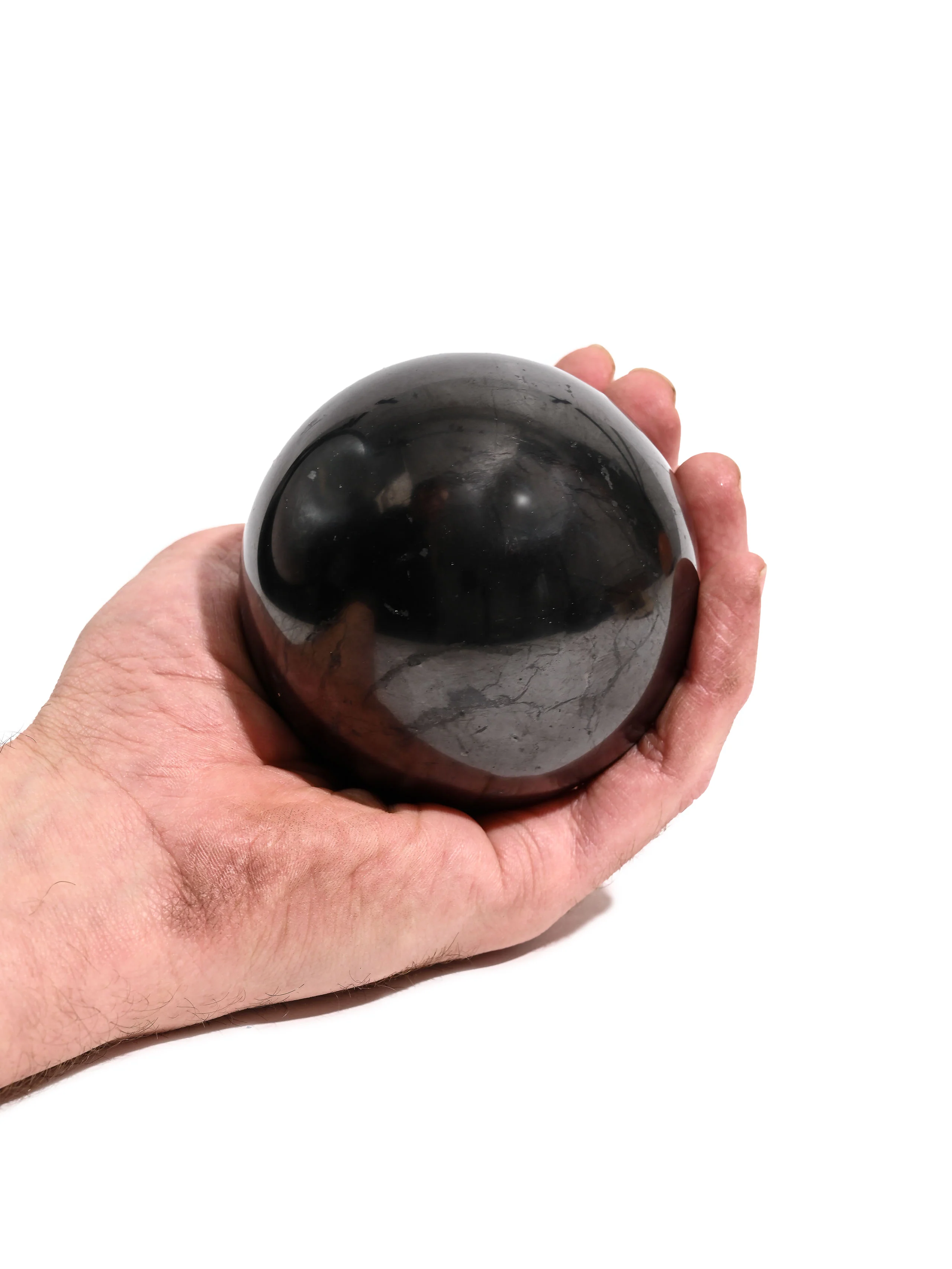 A powerful and elegant ally for grounding, protection, and energetic balance. Carved from ancient carbon-rich stone found only in the Karelia region of Russia, each sphere carries the deep, primordial wisdom of the Earth. Its polished, mirror-like surface radiates a quiet strength, making it both a striking display piece and a meaningful, energetic tool.